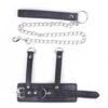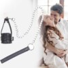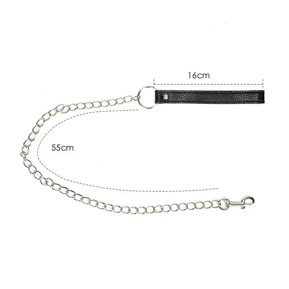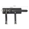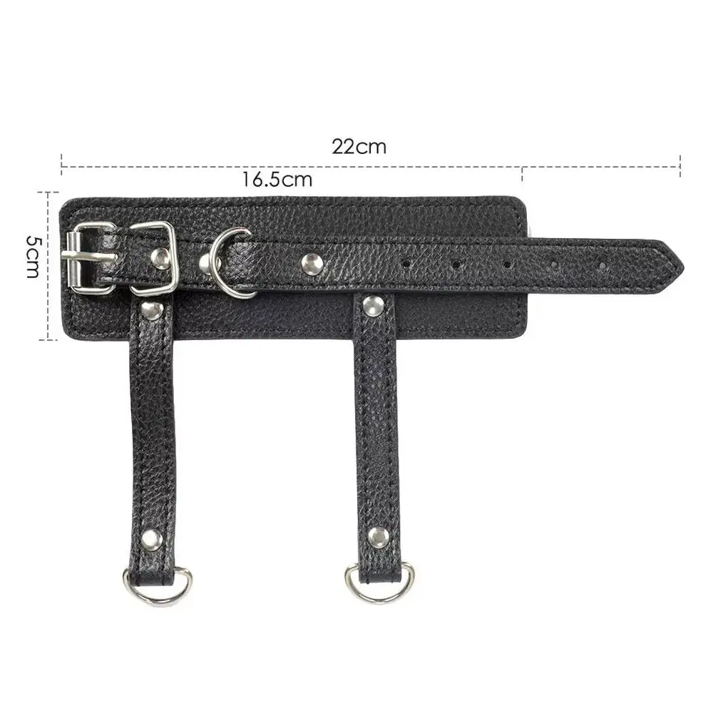 Conta com três anéis em D — um frontal e dois nas alças suspensas — proporcionando múltiplas opções para conectar trelas, correntes ou pesos, tornando o acessório versátil para diversas práticas BDSM.