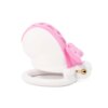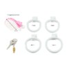 Cinto de castidade masculino em plastico ABS rigido com design decorativo de lacinho. Sistema de trava integrado com cadeado. Gaiola ventilada para uso prolongado confortavel.